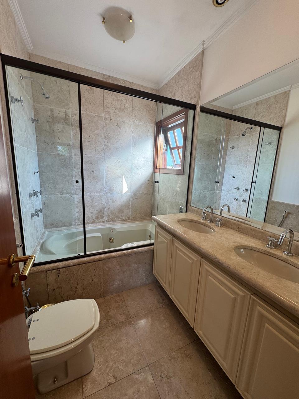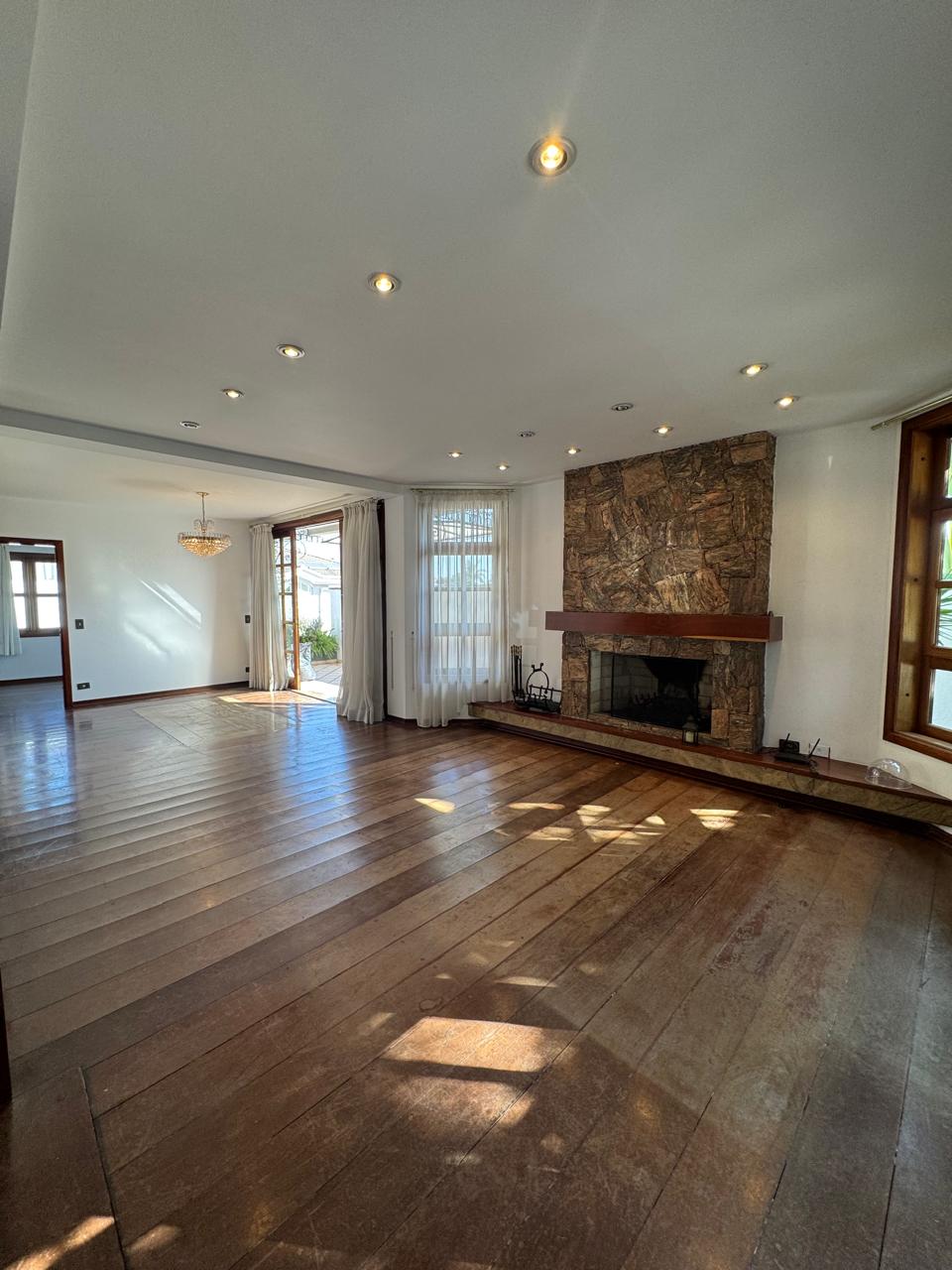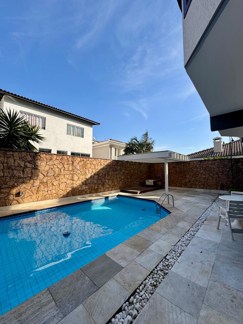 Com 4 quartos sendo 2 suítes com banheira de hidromassagem (a máster com closet e varanda), roupeiro, escritório, sala de estar com lareira, sala de jantar, sala deTV e almoço, cozinha é planejada, depósito, área de serviço, dependência de empregada, churrasqueira e piscina aquecida. Garagem coberta para 4 carros.