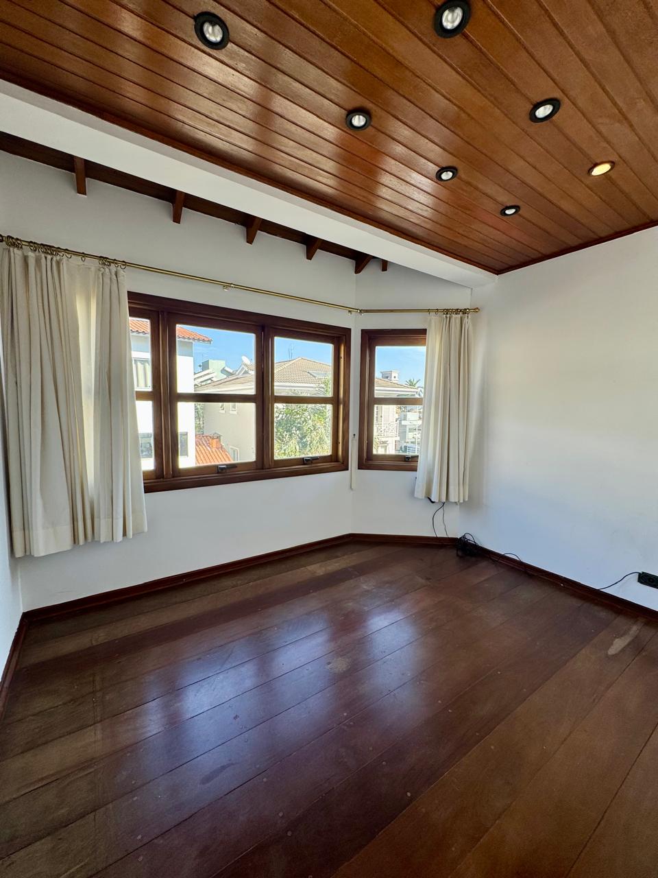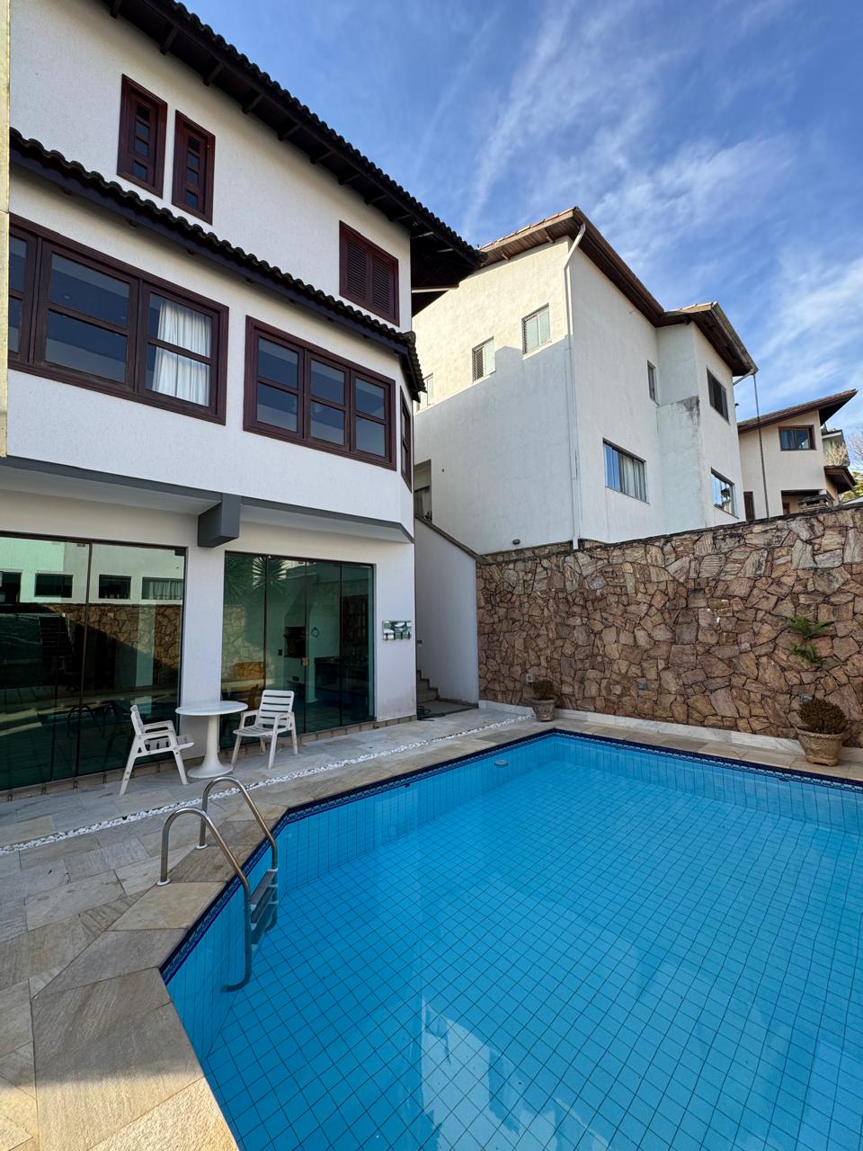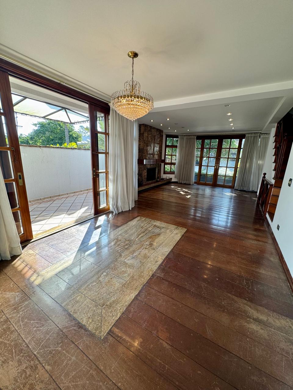 Com 4 quartos sendo 2 suítes com banheira de hidromassagem (a máster com closet e varanda), roupeiro, escritório, sala de estar com lareira, sala de jantar, sala de TV e almoço, cozinha é planejada, depósito, área de serviço, dependência de empregada, churrasqueira e piscina aquecida. Garagem coberta para 4 carros.
