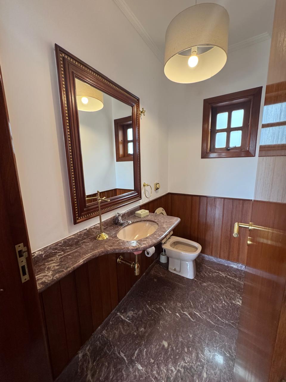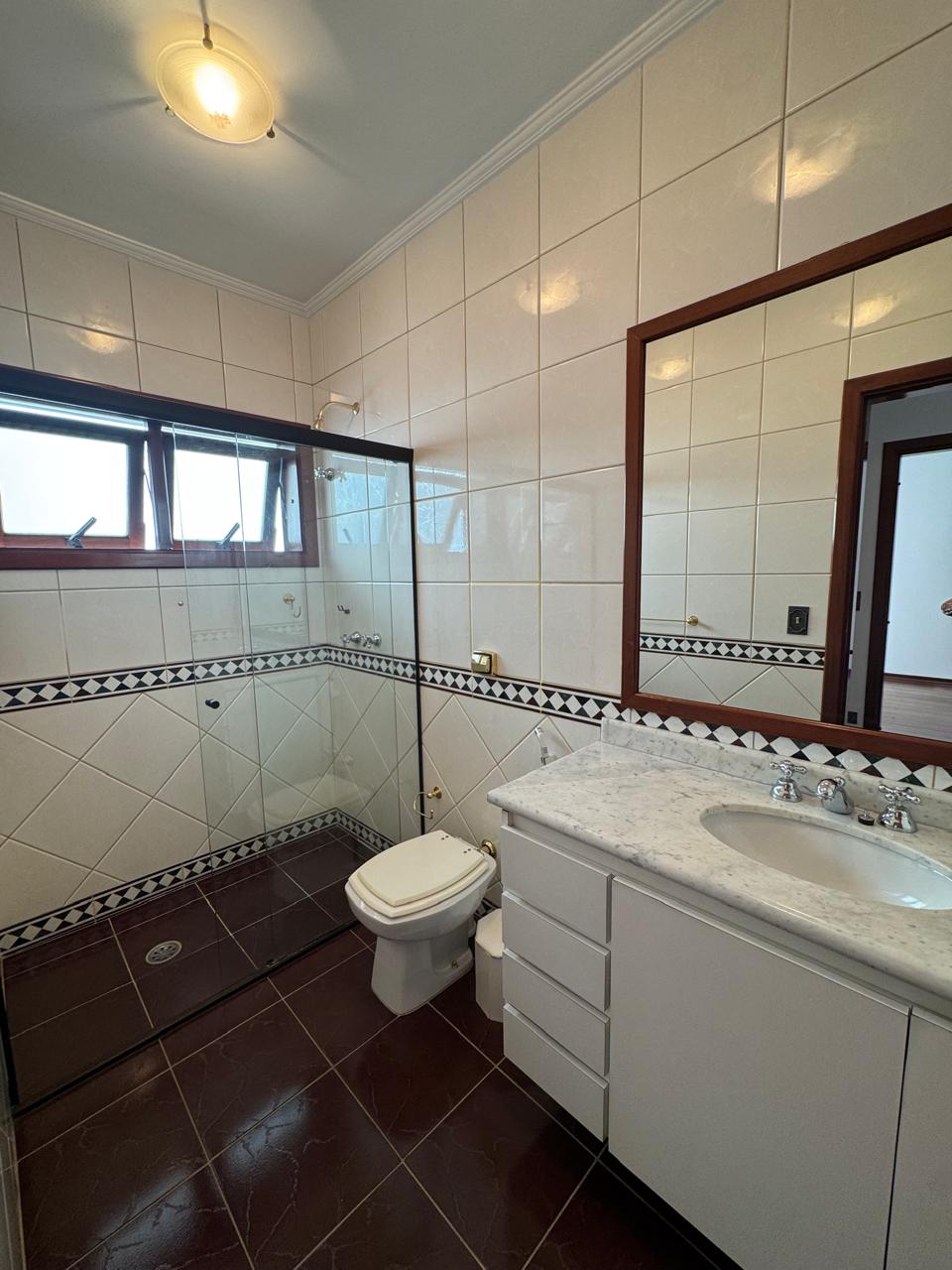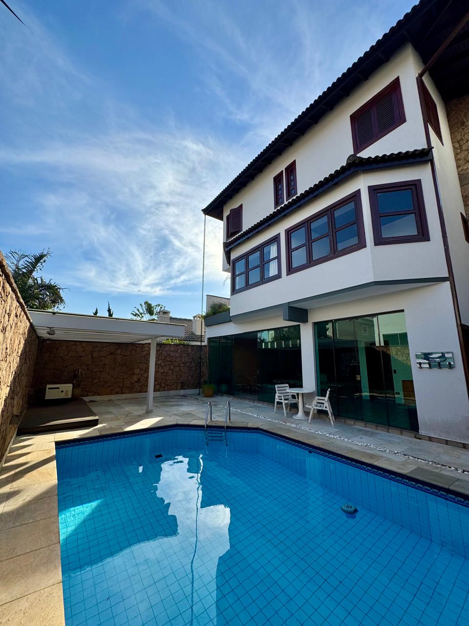 Com 4 quartos sendo 2 suítes com banheira de hidromassagem (a máster com closet e varanda), roupeiro, escritório, sala de estar com lareira, sala de jantar, sala de TV e almoço, cozinha é planejada, depósito, área de serviço, dependência de empregada, churrasqueira e piscina aquecida. Garagem coberta para 4 carros.