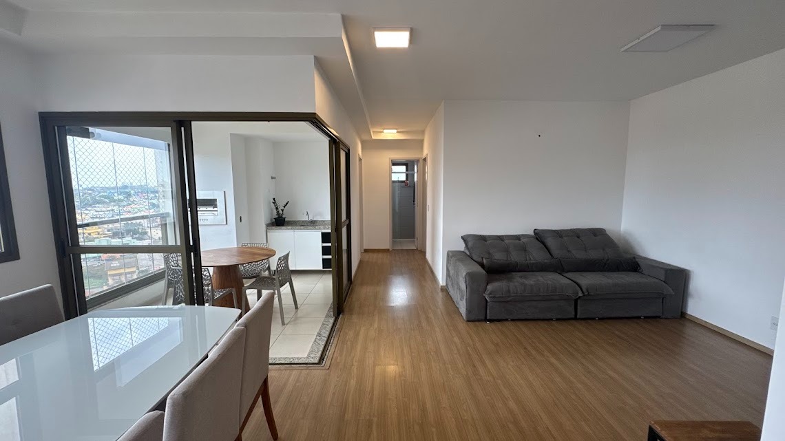 Alugue este apartamento de 99m² semimobiliado, perfeito para quem busca conforto e praticidade. A planta é muito bem distribuída com 3 quartos (1 suíte), sala de jantar e TV, varanda gourmet, cozinha, lavanderia e 2 vagas de garagem cobertas.